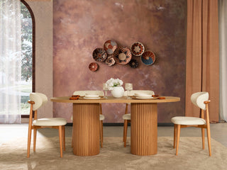 Oval dikdörtgen formu ile Bodrum yemek masası, estetik ve işlevselliği bir arada sunar.