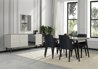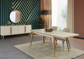 Venezia Yemek Odası Takımı'nın modern sadeliğiyle ön plana çıkan tasarımı.